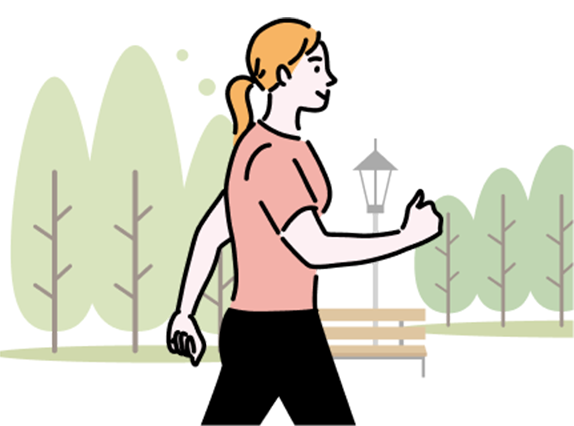 心地よいペースで、好きな音楽を聴きながら、20分から30分散歩。音楽のリズムに合わせて歩き、その時間を楽しみましょう。