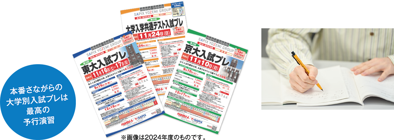 「SAPIX YOZEMI GROUP 模試」は、各大学の入試問題を研究して作成されています。的中例も多数。志望校対策に欠かせない模試です。