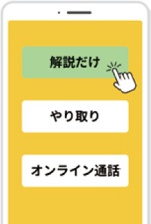 解説方法が選択可能 - 解説方法は「チャット」「オンライン通話」「解説のみ」から選択可能。