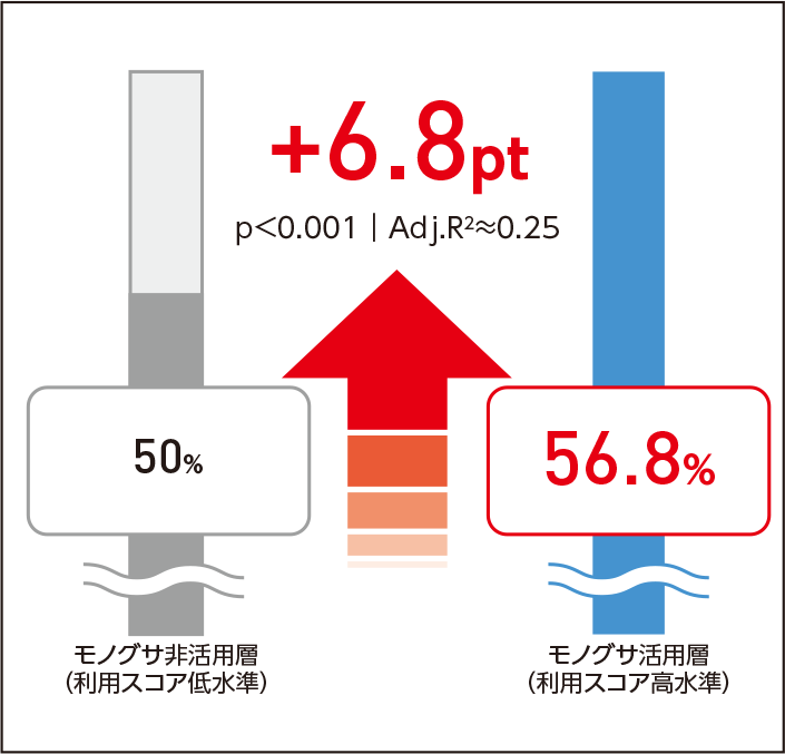 - ※利用スコアの定義:モノグサの活用度を、記憶済の問題数、平均記憶度、総取組回数から算出した独自の活用度指標です。