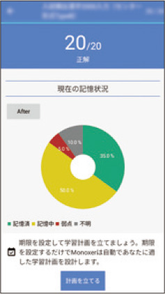 自分の弱点を把握!正誤情報や解答履歴をすべて集計しており、「今どれだけ憶えているか」をAIが判定・計測します。