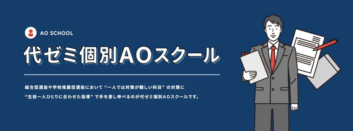 | 個別指導パック | 総合型選抜・学校推薦型選抜に特化した個別指導や新学期準備、個別指導をお試しで始めたい方のための「個別指導スターターパック」など、スポットで気軽に利用できるパックです。 |