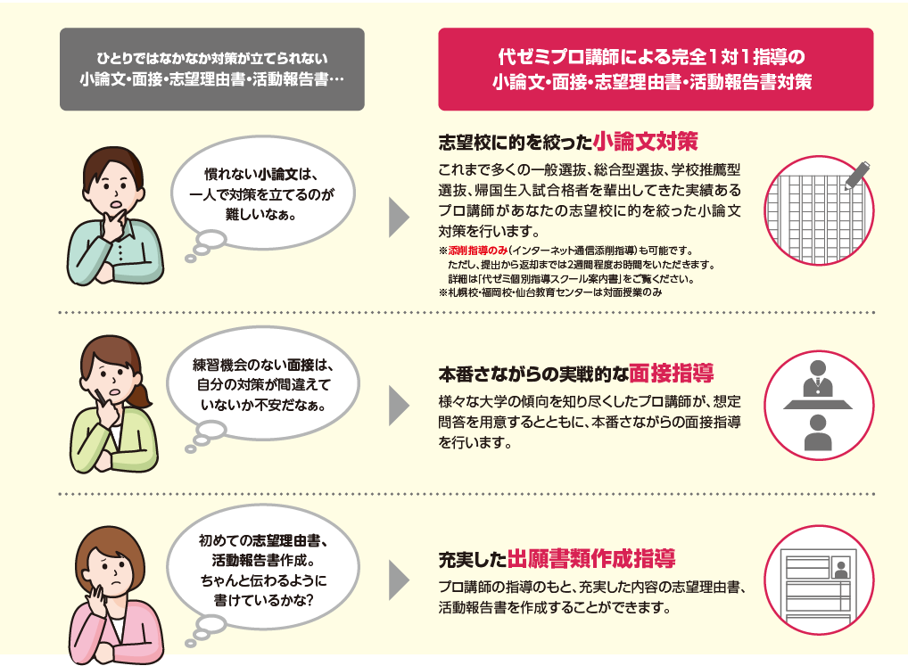 代ゼミ個別指導スクールでは、皆さんの特別選抜対策を一人ひとりに最適な形で後押ししていきます!