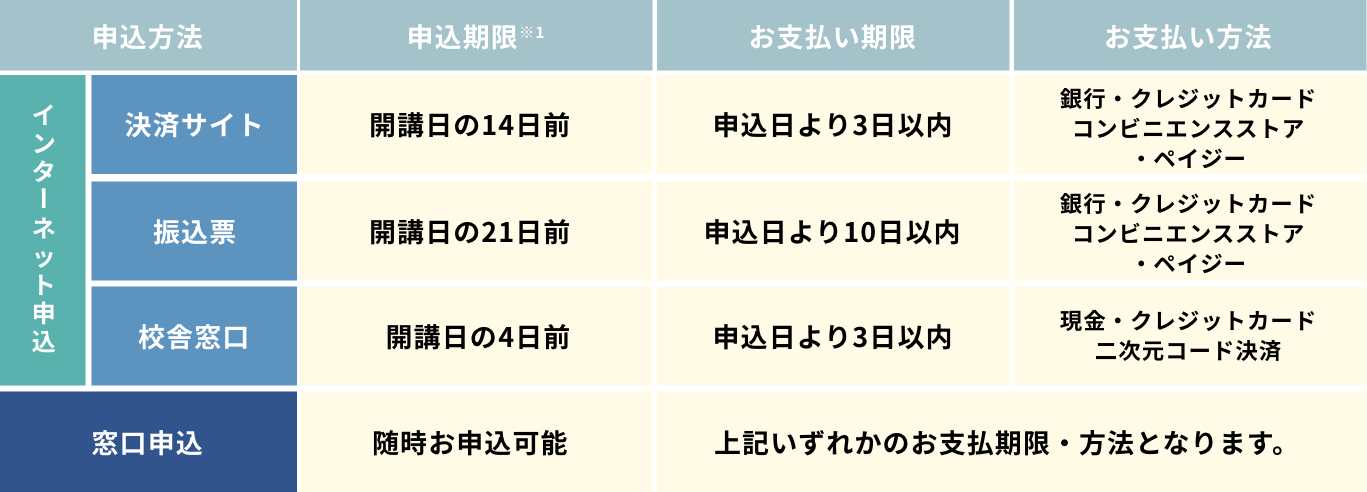 - ※校舎により一部対面のみ・映像のみの講座があります。