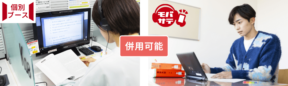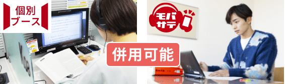 - ※対面授業を欠席した場合、映像授業で振替が可能です(一部の講座を除きます。原則手数料がかかります。また、個別ブース受講のみでの対応のため、モバサテ受講はできません)。