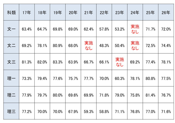 東京大学 -【図表④】第1段階選抜の合格最低得点率の推移