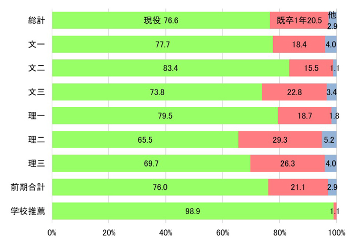 東京大学 -【図表⑧】合格者の現役・既卒割合(前期科類別)