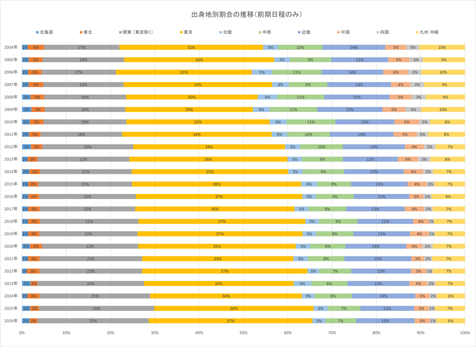 合格者の出身地別割合の推移(前期日程)