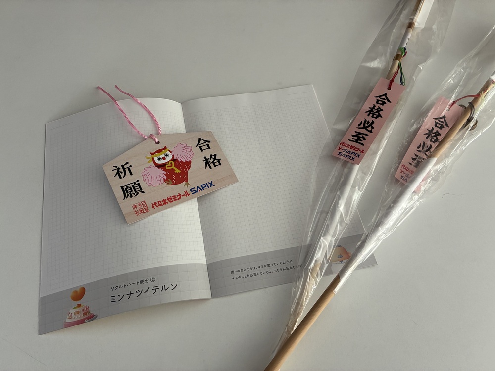 セミナーが終わった後には、代ゼミオリジナルの御神矢や絵馬、栄養ドリンクやノートなど受験勉強に役立つグッズを配布しました。