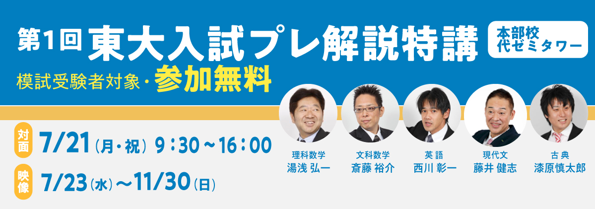 東大入試プレ受験後は、東大対策に精通した代ゼミ講師による解説特講を受講して、効率よく復習しましょう!